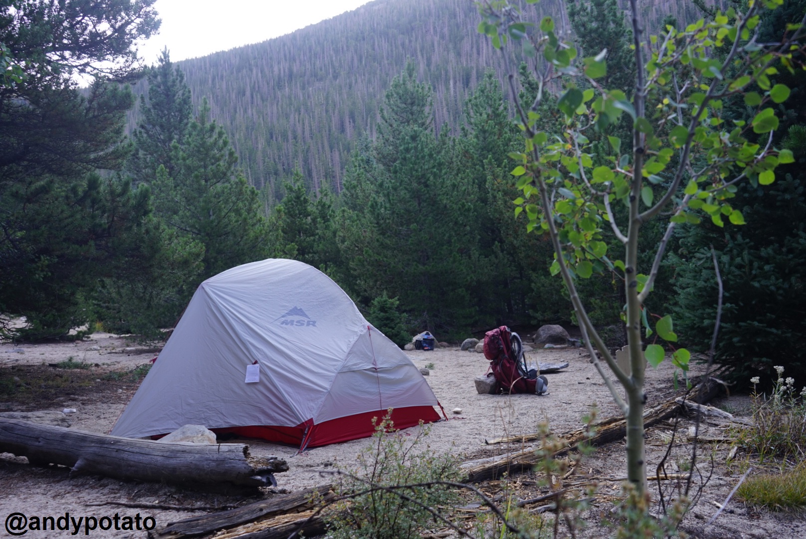 ) - 2021, Solo traveler, 1-night trip at the Lawn Lake trail (~12 miles, elevation gain 2500 feet), Rocky Mountain National Park, Estes Park, CO